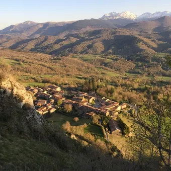 A loop to discover all the charm of Roquefixade. A pleasant ascent, shaded by the hamlet of Coulzonne and the cave, to the Calm plateau and the Marot rock (1001m), offering exceptional panoramic views of the village, the castle ruins below, the nearby Pyrenees, Montségur and the Toulouse plain on the horizon. Then a descent that takes you through the medieval bastide, where you can enjoy a terrace and a drink at the gîte d'étape. Return on the flat Cathar trail, a distance of 10 km.