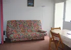 studio with veranda: view of the slopes living room, kitchenette, 1 sofa bed sleeping area 2 single bunk beds